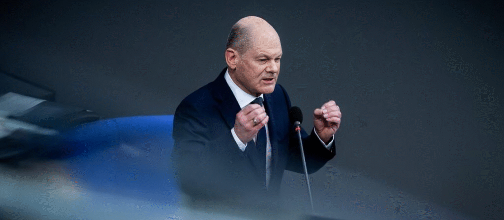Olaf Scholz in Aktion – ein Foto, das seine Entschlossenheit zeigt.